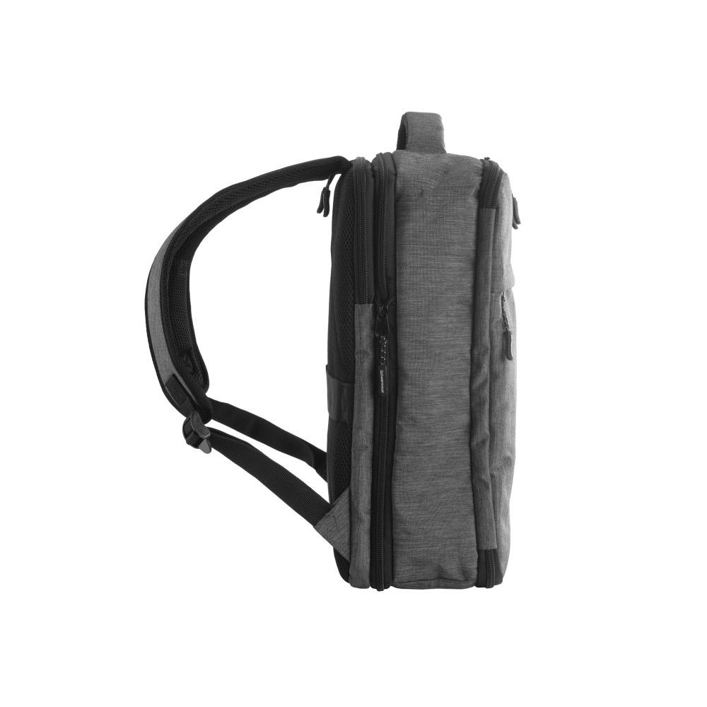 Schwarzwolf travel backpack in a grey color. The backpack is interesting because it resembles a travel suitcase in composition and is suitable as carry-on luggage on board a plane. It has an internal compartment that includes a large mesh pocket zipper and mesh pocket with zipper. The exterior of the backpack includes a front zippered pocket, a zippered laptop pocket on the back of the backpack, an expandable zipper that increases a capacity of the backpack and a strap to attach to the suitcase. The backpack has a padded back system and shoulder straps. Features a grab loop. From 300 pieces, we now offer you the possibility of custom-made production in the color of your choice and also with pulls or inner lining with your logo.