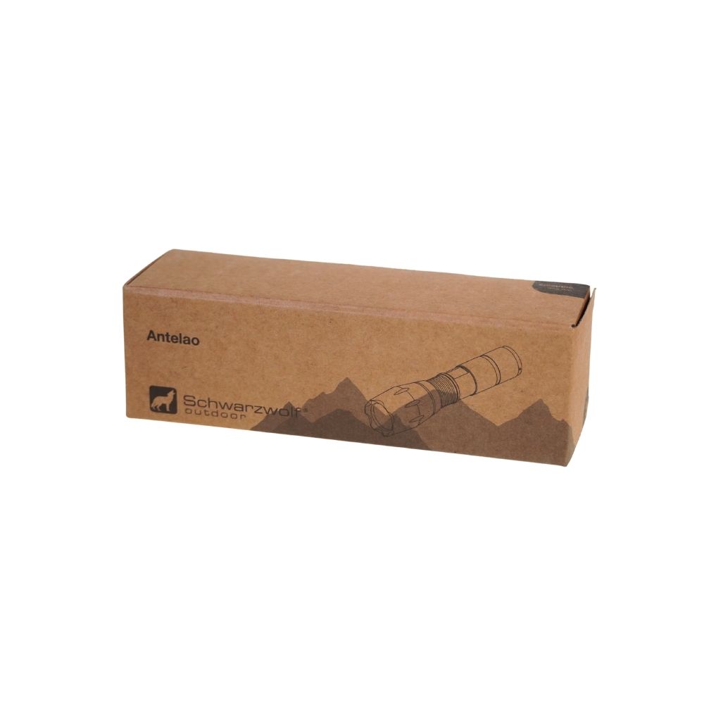 Schwarzwolf outdoor flashlight with wrist strap that contains CREE T6 diode. Thanks to the extending head it allows you to regulate the focalization and switch power of the light. Packed in a gift box. Luminosity: 260 lumens. Dimensions: 13.5 × 3.5 cm, extending length 16 cm, wrist strap – 21 cm. Baterries 3 × AAA included. Carbon footprint: gCO2 e5961.